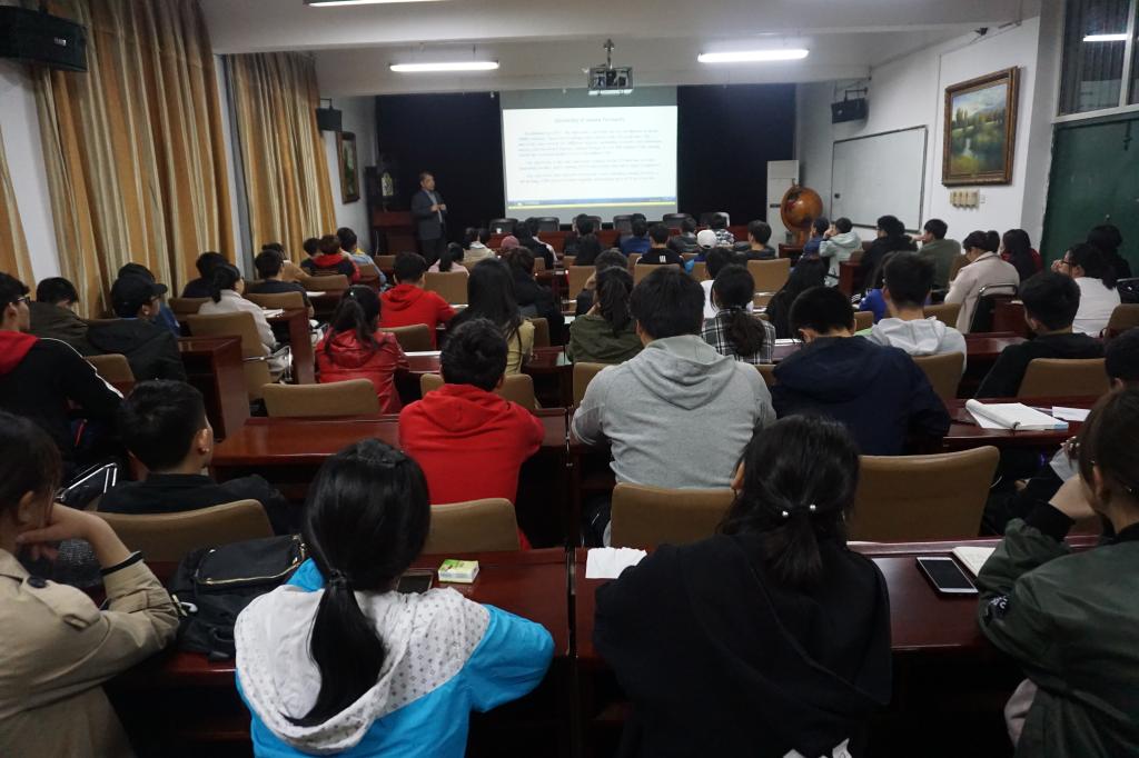 陈钢教授做了题为《Alaska and University of AlaskaFairbanks》的报告。首先采用图文结合、视频等方式生动形象地介绍了阿拉斯加州的地理、自然和人文景观,油气和金属矿山产业的发展现状;然后对阿拉斯加大学费尔班克斯分校的概况、专业设置、实践教学方式和优秀中国留学生等情况做了详细介绍。