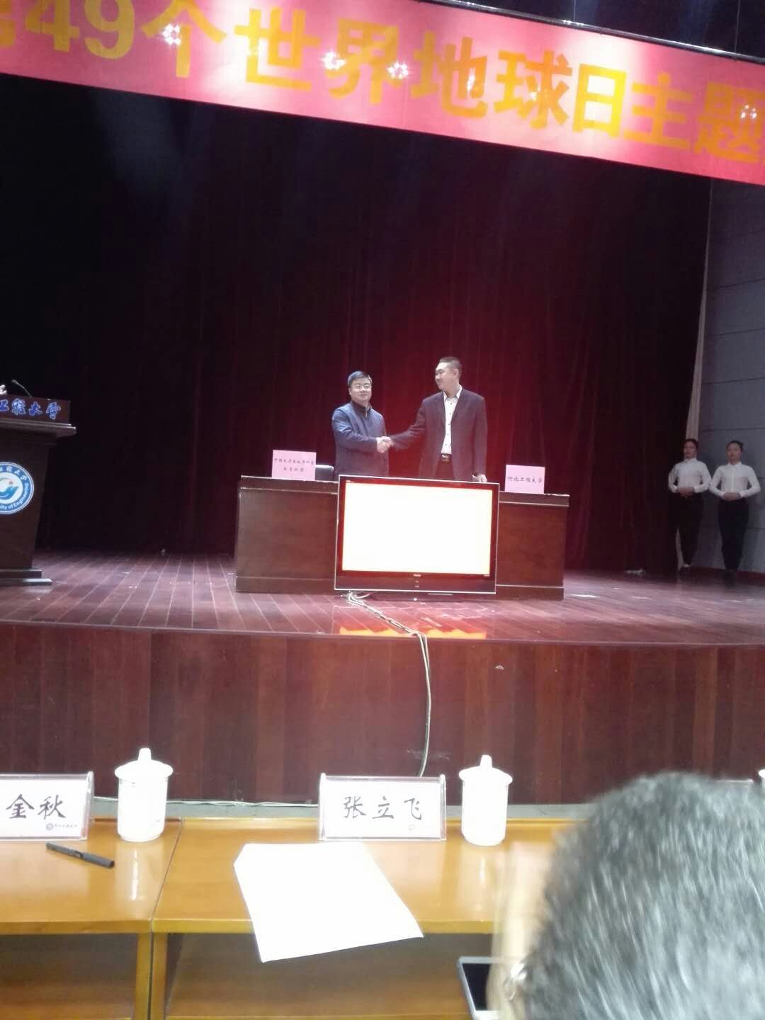 在此次地球日活动上,我校正式加入“中国大学生地学科普教育联盟”,151amjs澳金沙门学工办主任郝彬彬代表我校签订了协议。遥感1702班祖子贺代表全体学生向全社会发起“珍惜自然资源呵护美丽国土”倡议书。