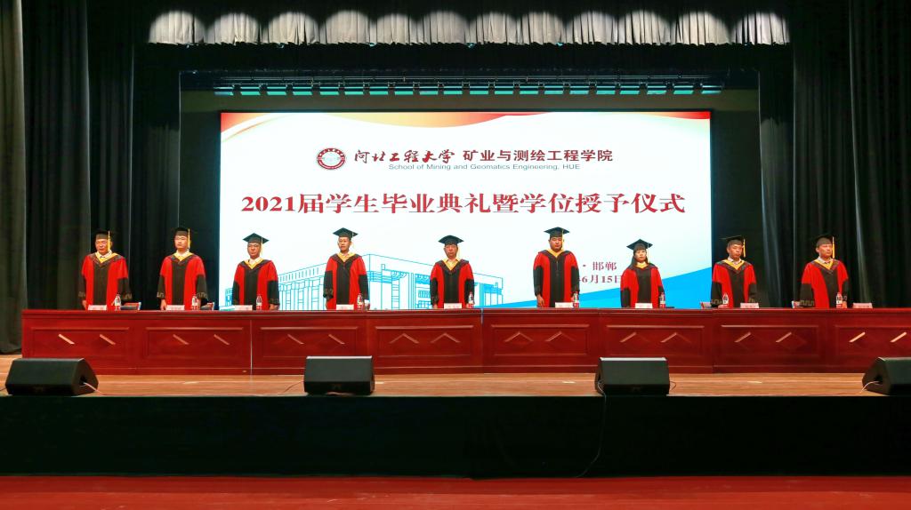 典礼开场,全体人员起立,奏唱国歌;接着洛锋宣读毕业生授予学位学生名单;然后与会领导为2021届硕士及本科毕业生进行拨流苏、授学位仪式。