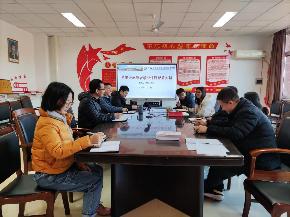 11月22日,学院召开冬奥会志愿者学业保障部署安排专题会议,院党委书记侯玮、院长李新旺、党委副书记赵玉玲、副院长洛锋及各科室主任参加了会议,会议由院长李新旺主持。