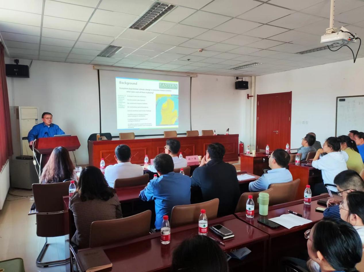 随后,谢一春教授以“Modeling grassland deterioration from climate change, land use conversion, and socioeconomic transformation at multiple scales”为题进行了专场学术报告,并现场回答了与会教师和学生提出的问题。